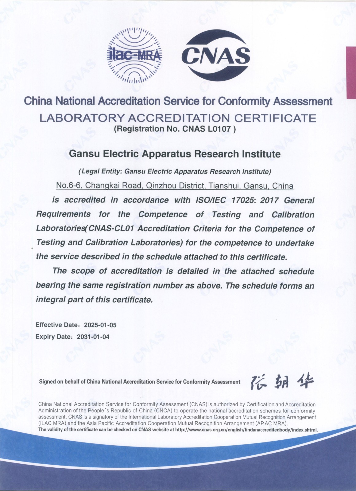 國家電力測量用互感器型式評價(jià)實(shí)驗(yàn)室(甘肅)